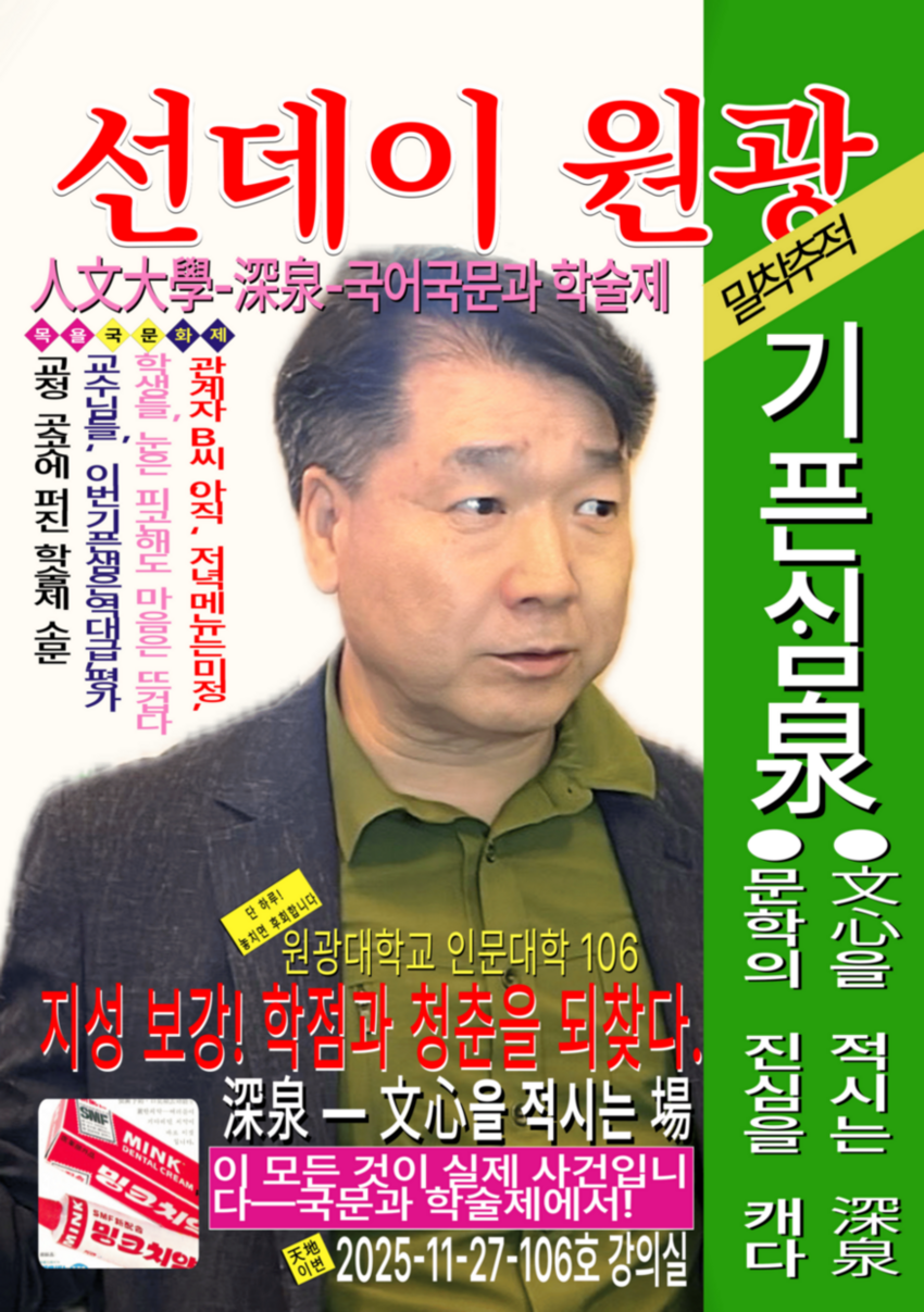 2025학년도 국어국문학과 기픈샘이 11월 27일 오후 3시부터 6시까지 인문대학 106강의실에서 진행 됩니다.